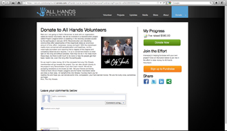 “Common Ground Social is one of the cleanest designed social online fundraising solutions I have seen,” said Andrew Kerr, development manager for All Hands Volunteers. “It gives us the ability to fully brand our organization and control the message; it is simple to use from an administration perspective as well as from the individual fundraiser’s point of view. The seamless integration with our Common Ground database is fantastic. It eliminates the process of manually entering donations like we had to do with our previous online fundraising portal—that alone will save my development staff several hours a week.”