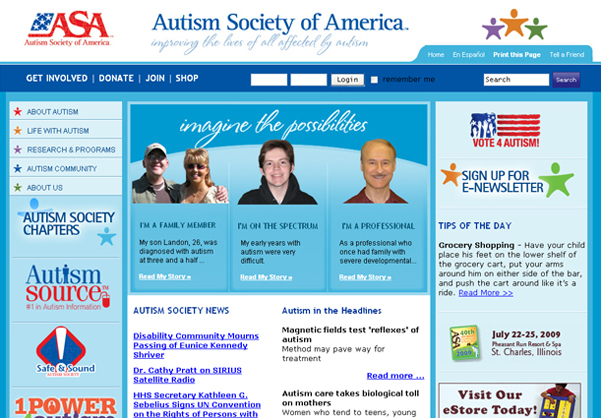 Since the new Autism-society.org launched on Convio in early 2008, ASA has seen incredible results. In addition to greatly expanding its online content, services, and engagement opportunities, Autism-society.org has attracted tens of thousands of additional new visitors each month and rolled out a number of successful online interactive programs for each of its key audience groups, including the Bounce for Autism fundraising event. And in answer to that question by parents and professionals – “where do I Google at 2 a.m. when I need information?” – more often than not it’s now ASA’s comprehensive online offering, Autism-society.org