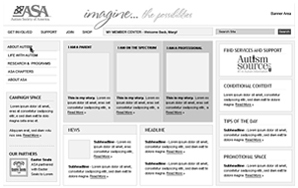 As autism has become one of the fastest-growing childhood diseases in the world, ASA discovered in 2007 that its website was receiving massive amounts of traffic – and losing the majority of that traffic before visitors accessed even a single page. ASA’s Director of Marketing, who is also a parent of a child with autism, made a personal goal: She wanted Autism-society.org to become the go-to resource for parents with autism, professionals working with patients on the autism spectrum, and adults with autism themselves. She began with a question – “when I need help, where do I Google at 2 a.m.?” – and asked Convio to create a user experience that would always make Autism-society.org the answer to the question.
